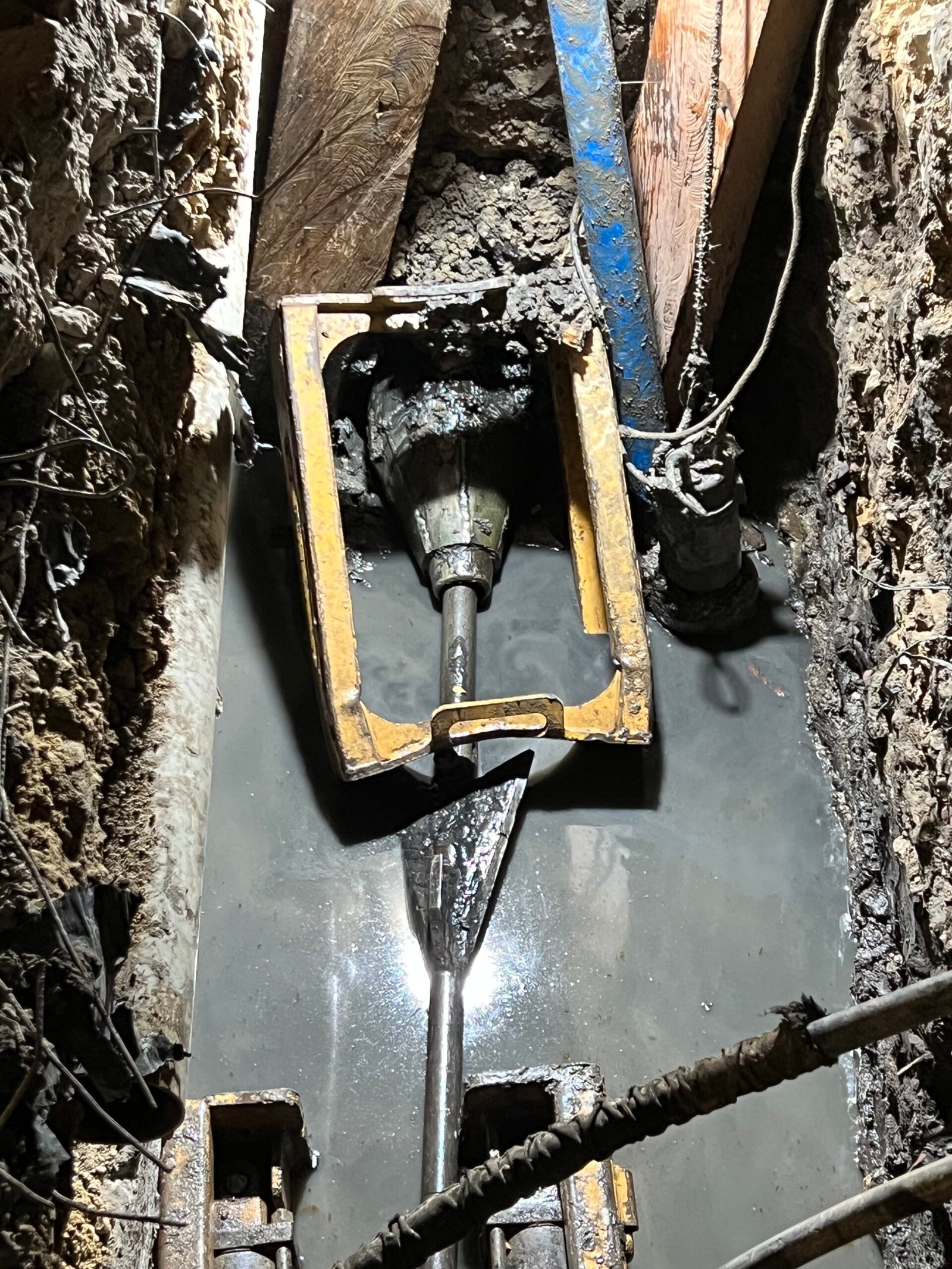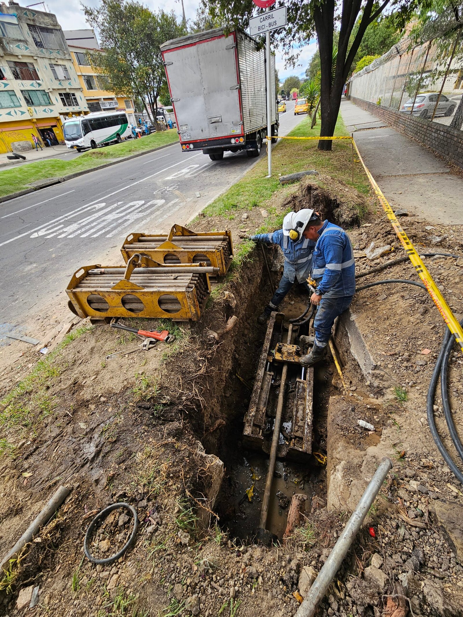 La máquina de restitución instala las varillas por dentro de la tubería a sustituir tanto para acueductos y alcantarillados en diámetros de 3″ hasta 60″, desde el pozo de inicio hasta el pozo de salida en longitudes de 80m. a 100m. Se conecta una cuchilla de corte de roca horizontalmente utilizando una en ensanchamiento de mayor diámetro del foso de salida, el tubo viejo es reventado y compactado a lo largo de la sustitución en el terreno. La tubería nueva instalada a medida que se van recogiendo el tren de varillas, permite el reemplazo de tuberías de hierro fundido, concreto, asbesto, pvc y en general materiales fractúrables por uno nuevo de polietileno del mismo diámetro o mayor, según las condiciones del subsuelo.